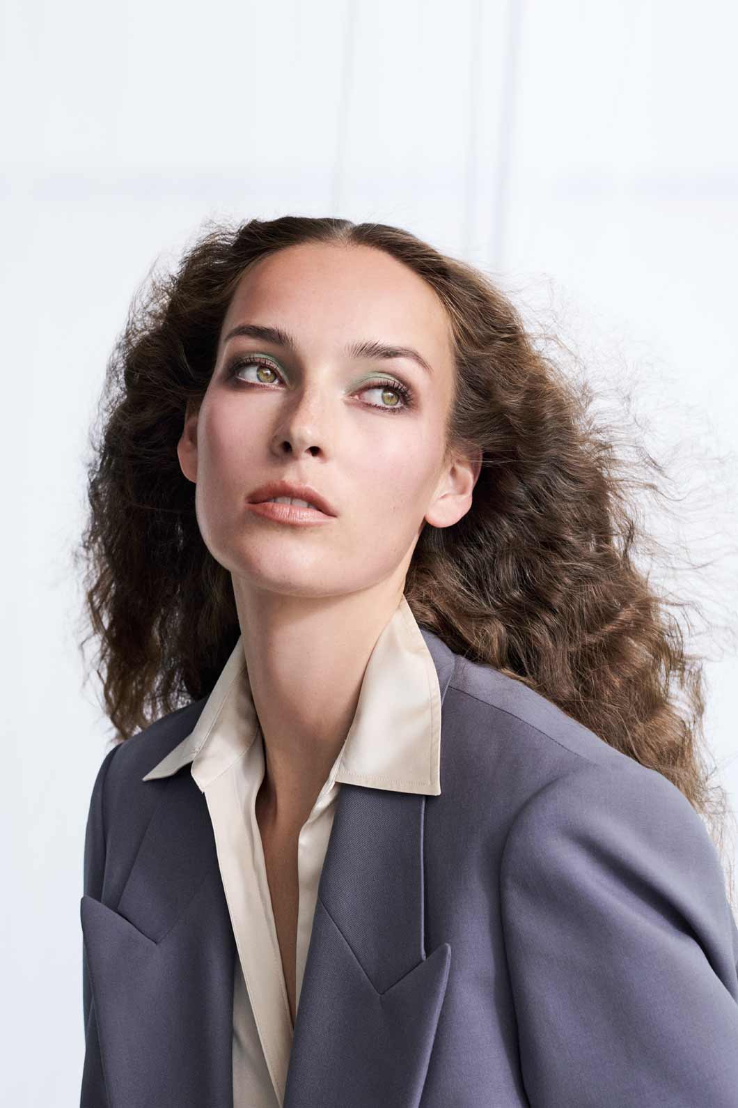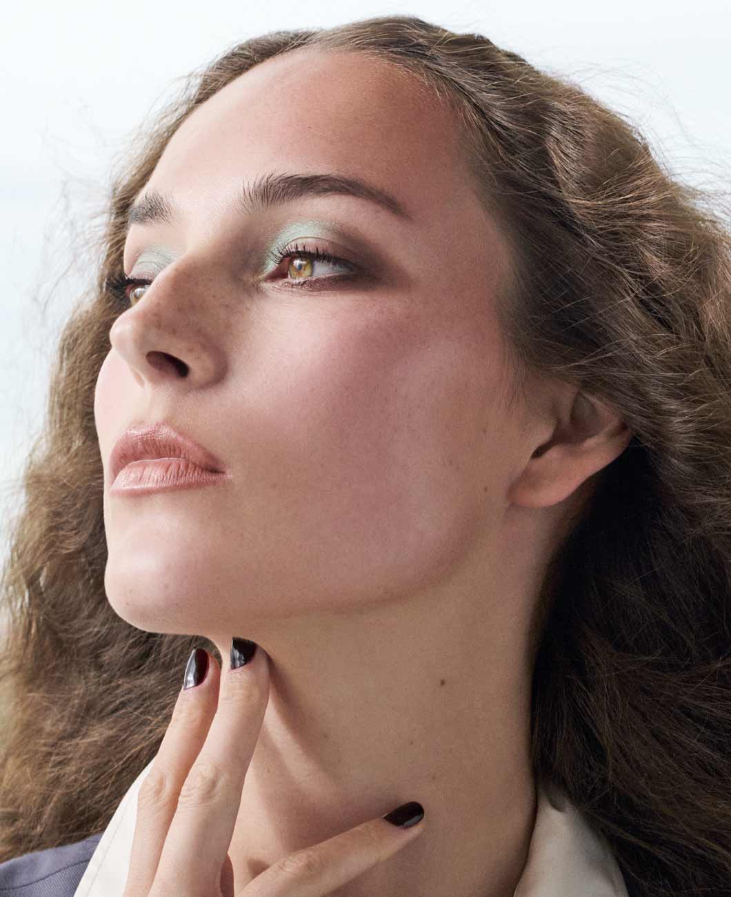Dem schimmernden Mintgrün des Eyeshadow Pen Tropical Breeze steht die kühle Präzision gegenüber, mit der der Pencil for Eyes Walnut Silk die äußeren Augenwinkel akzentuiert. Selbstbewusst und eigenwillig, wie die mit dem Pencil for Lips Dune leicht überzeichnete Lippenkontur, die nahtlos in den warmen Nude-Ton von Sensual Lipstick Savannah übergeht.